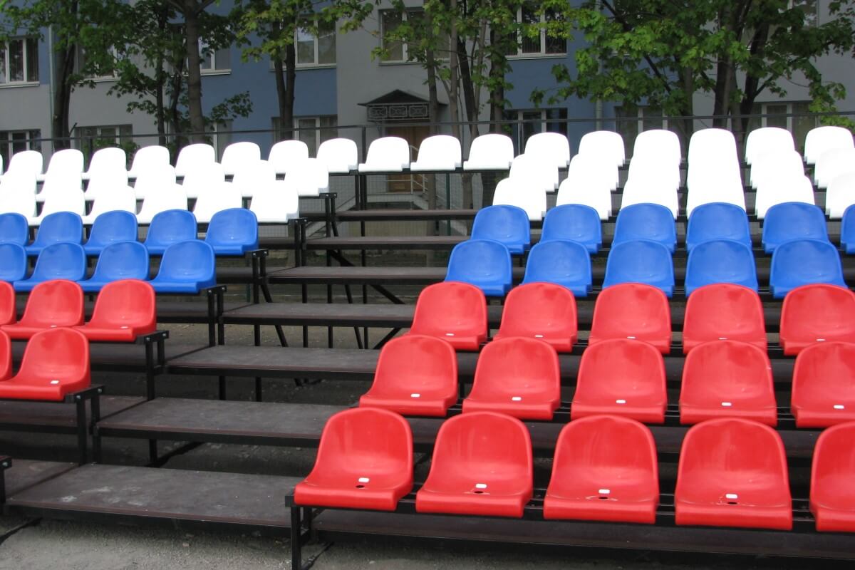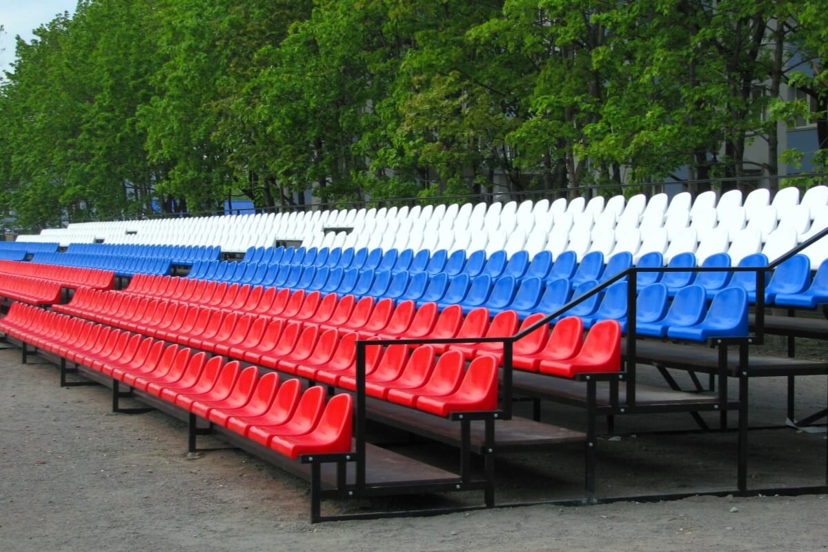 Главная страницаВ производственной компании «Уличный турник» Вы можете приобрести трибуны для зрителей любого вида и сложности. Мы производим металлические трибуны как с пластмассовыми сидениями, так и с лавками. Пластмассовые сидения оборудованы дренажным отверстием, что позволяет использовать зрительские трибуны на улице. Кроме этого, спортивная трибуна может быть оснащена навесом, а также необходимым подъемом. Окраска, габариты и комплектация конструкции определяется клиентом.